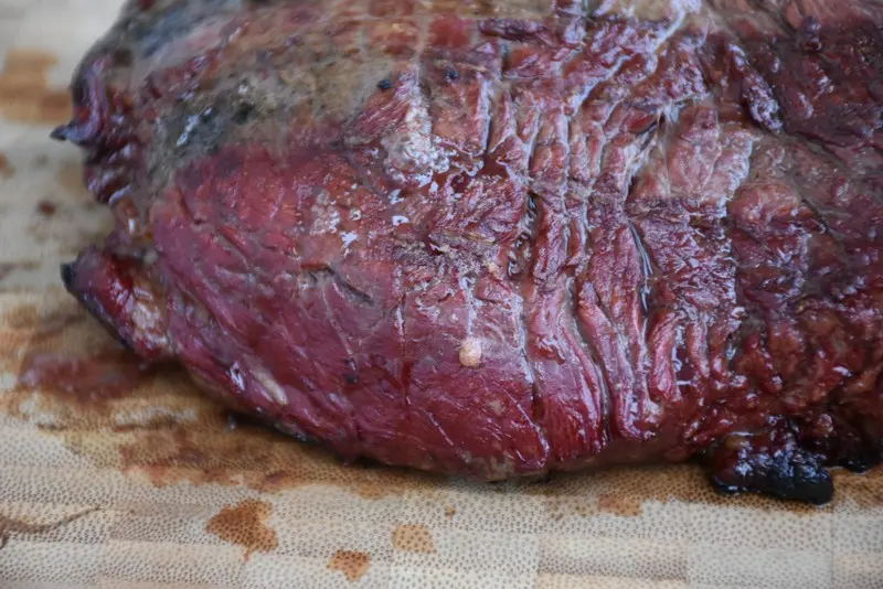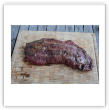 Unsere BBQ Smokern sind prädestiniert Flank-Steak zu machen. Nach dem angrillen um die Poren zu schließen kam das Flank-Steak noch für ca. 1/2 Stunde in den Garraum um mit unseren "Apple-Tree"-Smoker-Chips bis zu einer Kerntemperatur von ca. 54°C-56°C fertig zu garen. Anschließend noch ca. 5-10 Min. ruhen lassen. Aufgeschnitten wird es immer quer (wichtig) zur Faserrichtung. Etwas Salz und Steak-Pfeffer drauf -> Fertig.